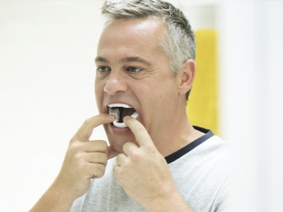 Narval CC-tandskinnen er skræddersyet til at passe præcist til dine tænder og kæbe. Den er lille, diskret og nem at bruge, også på ferien. Du kan tale, drikke og åbne munden helt naturligt, når du har den på. Den er biologisk nedbrydelig, fremstillet af polyamid for at reducere risikoen for allergi og indeholder hverken metal eller latex. Den er også slidstærk: Narval CC kan modstå kræfter svarende til dem, der genereres af bruksisme (tænderskæren).1